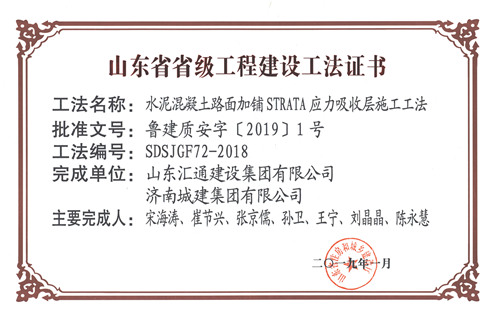 集团“水泥混凝土路面加铺STRATA应力吸收层施工工法”被评为山东省省级工程建设工法